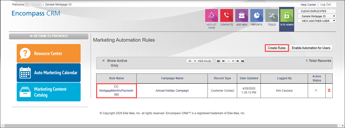 Marketing Automation Rules in your Encompass CRM instance that are impacted by these changes, will be deactivated prior to the release. You will receive a notification identifying the rules that you will need to update, after the release.