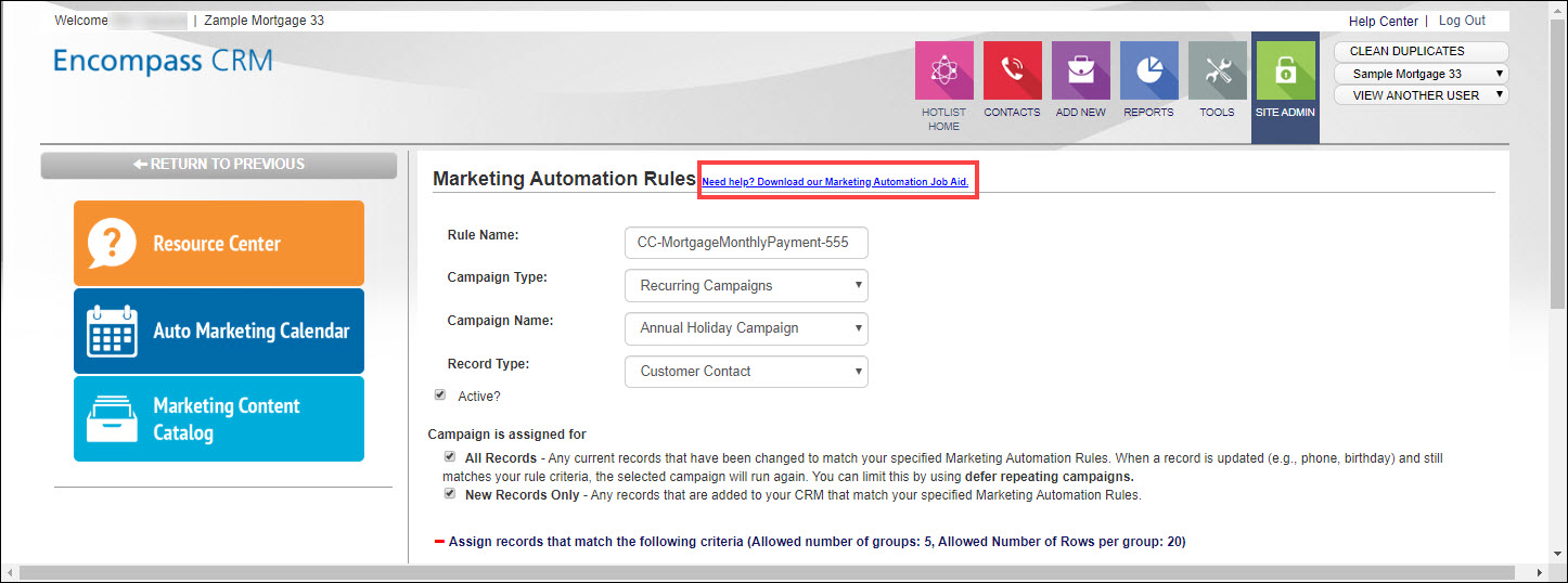 - Click the Need help? Download our Marketing Automation Job Aid link.