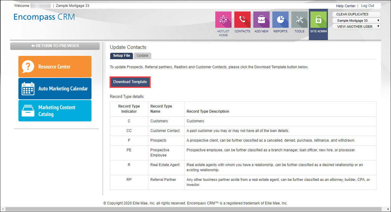 Encompass CRM administrators now have the ability to update Contacts using the new Update Contacts setting. Similar to the Import Contacts feature, admins can now download a template provided in the Update Contacts page, update the template, and upload it back to Encompass CRM.