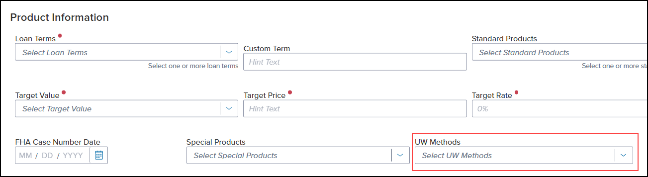 A new optional UW Methods field has been added to the Custom Search Page under the Settings tab.