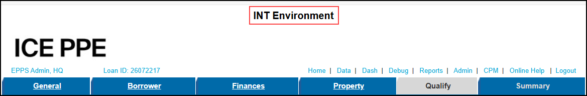 A new banner that indicates the environment (e.g., Development, QA, UAT, etc.) has been added to both the Encompass web interface and the ICE PPE portal.