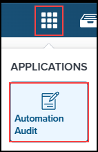 From the Pipeline page, select the App Launcher icon on the upper right corner of the page and then select Automation Audit.