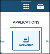From the Pipeline page, select the App Launcher icon on the upper right corner of the page and then select Deliveries.
