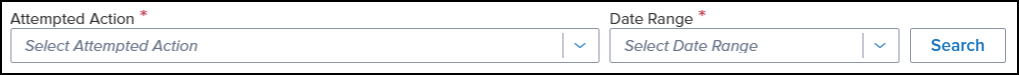 If Search by Attempted Action is selected, choose an action and a date range, and then select Search.