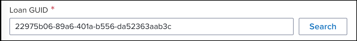 If Search by Loan GUID is selected, enter a Loan GUID and then select Search.