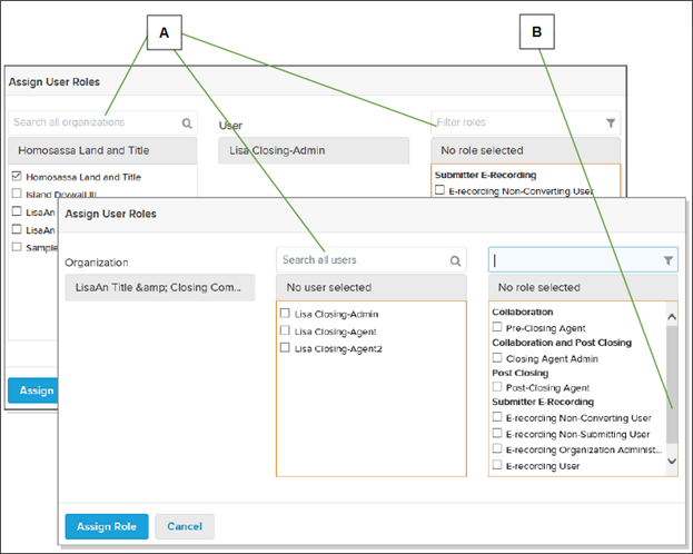 | A | Roles you can assign display after you choose an organization. |