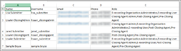 The Users page displays all the Simplifile users from the organizations affiliated with both your company and Simplifile. Below is an example.