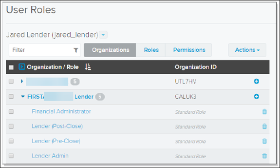 Each organization has its own Organization User & Roles page. This page includes the following tabs: