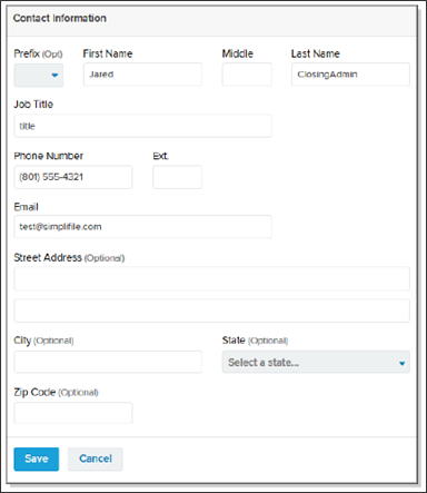 If necessary, you can edit existing Simplifile user contact information. However, only the user can change his or her password.